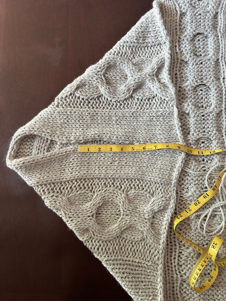 - Fold in the corners towards the center of the garment and mark where the body will be seamed, making sure to count the stitches from the inside edge to the outside.