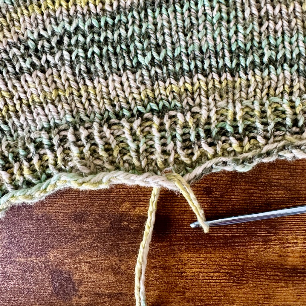 Skills required: knitting in the round, knitting flat, single rib stitch, stockinette stitch, decreasing (K2tog, SSK), Increasing (M1L, M1R, YO), binding off, Jeny’s Super Stretchy Bind Off, Three Needle Bind Off